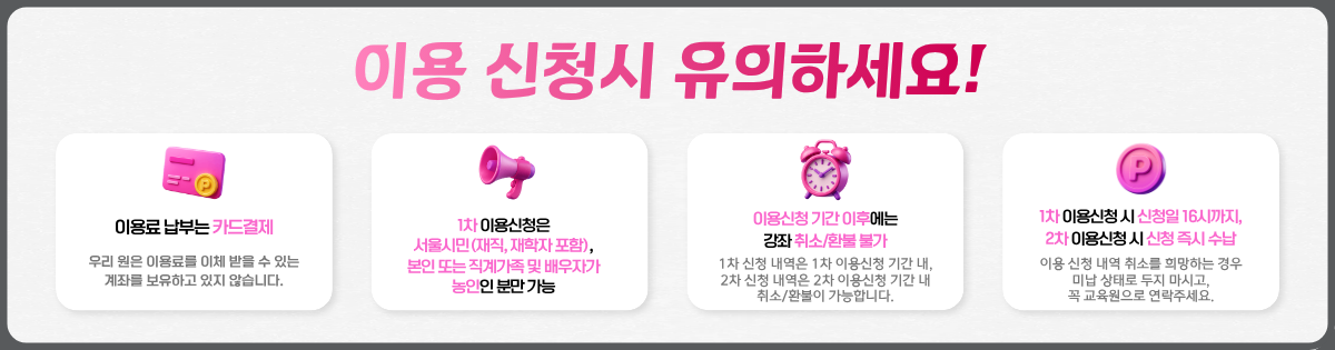 1Â÷: 3. 18.(¼ö) 10½Ã ~ 3. 19.(¸ñ) 16½Ã / ¼¿ï½Ã¹Î(ÀçÁ÷, ÀçÇÐÀÚ Æ÷ÇÔ), º»ÀÎ ¶Ç´Â Á÷°è°¡Á· ¹× ¹è¿ìÀÚ°¡ ³óÀÎÀÎ ÀÚ ´ë»ó